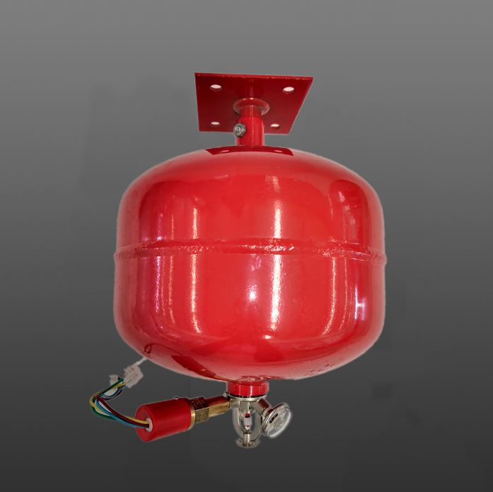 产品描述:悬挂式灭火装置是集灭火剂贮存容器、灭火药剂、感温玻璃球、感温玻璃球快速电启动装置、喷头、压力显示器、悬挂支架等于一体的能自动探测并实施灭火的装置。该装置具有体积小、重量轻、不需安装管道、不占防护区地面面积,以及可实现多台悬挂式灭火装置自动、电气手动联动启动等特点。悬挂式灭火装置既可与消防报警系统联动启动,又能实现无电源感温自动启动,工程应用中可根据现场条件任意选择。